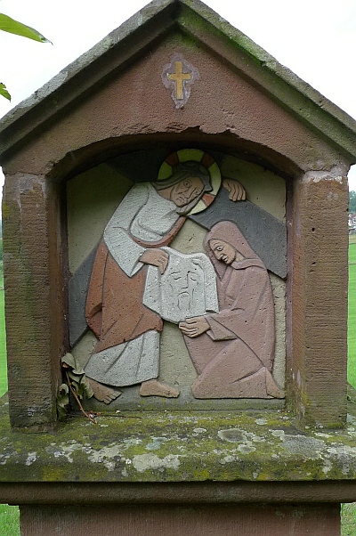 Seit dem späten 17. oder frühen 18. Jahrhundert führt ein Kreuzweg von der Wittlicher Straße hinauf zur Frohnertkapelle. Das ursprüngliche Fußfällchen mit sieben Stationen aus rotem Sandstein und Figuren aus Holz wurde 1892 auf 14 Stationen erweitert." [2]