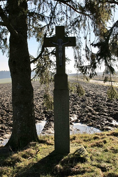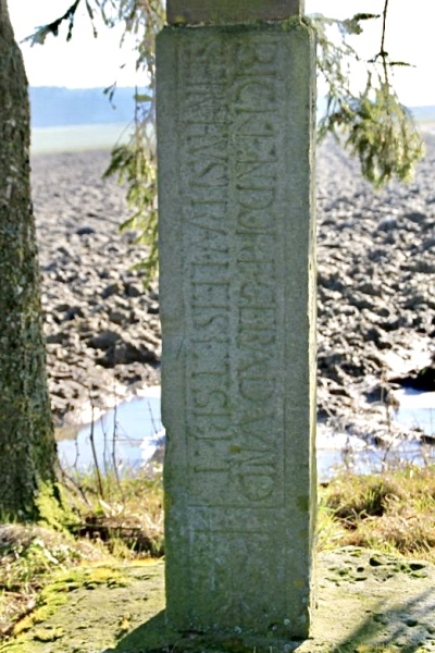 Unterer Teil eines Schaftkreuzes vom Kyllburger Typ, seitlich datiert 1626. Die schaftparallele Inschrift nennt als Errichter BICKENDORF GERAD UND SEIN HUSFRAU LEISETSBET. Das Abschlußkreuz aus dem 19. oder frühen 20. Jahrhundert. [1]