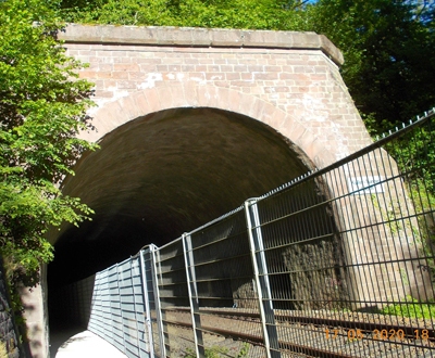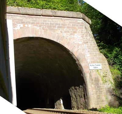 Kyller Tunnel mit Nordportal und Südportal zwischen Streckenkilometer 149 und 150; Teil der bis 1871 erbauten Eifelbahn. [1]