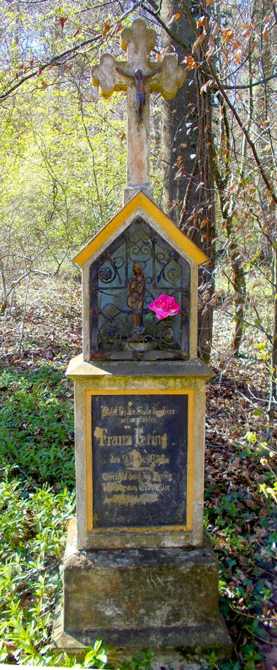 Nischenkreuz am Waldrand nordwestlich der Ortslage an der alten Banngrenze zu Udelfangen.