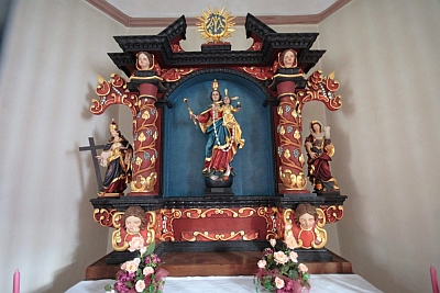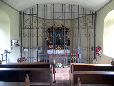 Östlich der Ortslage auf einer Wiese: sogenannte Fintenkapelle; Putzbau, bezeichnet 1741; bauzeitlicher Altar. [1]