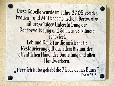 Wallfahrt zu: Muttergottes mit Kind. Pfarramt Sankt. Johannes der Täufer, Kirchstraße 3, 54518 Bergweiler. [2]