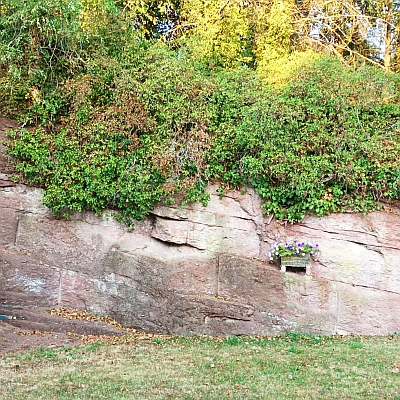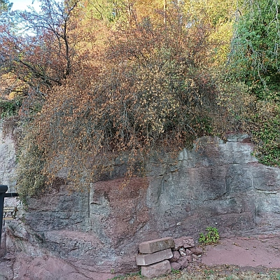 Aufgelassener Sandsteinbruch am Friedhof Bausendorf. [1]