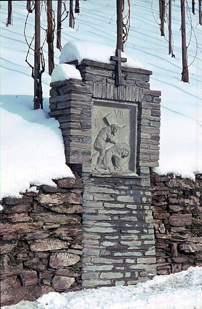 Im Jahre 1875 ließen August Wagner, seine Schwestern und Bürger von Kröv entlang des "Neuen Weges" (Bergstraße) den ersten Kreuzweg errichten. Ausführung der 14. Stationsbilder in Terrakotta.