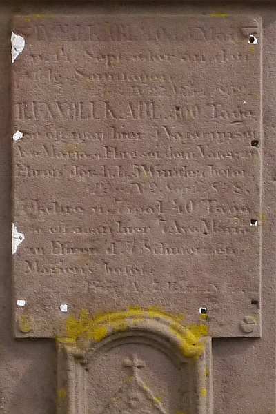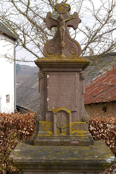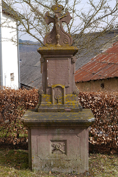 Südlich der Kirche auf dem Friedhof ein Altarkreuz aus rotem Sandstein, bezeichnet 18[41]. [1]