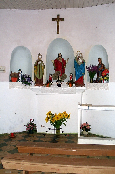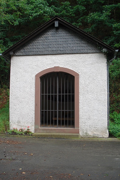 Schlichter, dreiseitig geschlossener Bau, im Inneren Nischen in den Polygonalseiten (vergleiche die Kapelle in Neumagen-Dhron, Ortsteil Papiermühle). 2. Hälfte 19. Jahrhundert, 1987 (Inschrift) stark erneuert. [1]