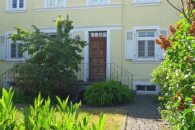 Quereinhaus mit repräsentativem Wohnteil, Ende 19. Jahrhundert. Die beiden mittleren der vier rechten Achsen als flacher Risalit vorgezogen, im Obergeschoß Rundbogenfenster. Äußerlich im wesentlichen unverändert erhalten. [1]