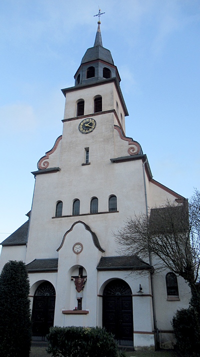 Vierachsiges Schiff mit eingezogenem, dreiseitig geschlossenem Chor, errichtet 1870 nach Plänen des Wittlicher Kommunalbaumeisters Heinrich Bruck. Die turmüberhöhte Westfront 1932 nach Plänen des Trierer Architekten Monz in barockisierenden Formen. [1]