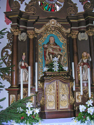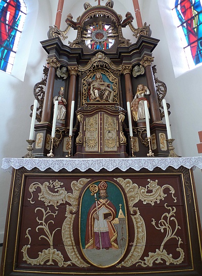 Unsere Kirche wurde schon im Jahre 1570 urkundlich erwähnt. Den Aufzeichnungen zufolge soll sie zwar erst 1756 erbaut worden sein, wahrscheinlich wurden in diesem Jahr jedoch lediglich Änderungen vorgenommen. Die Überlieferung sagt aus, dass an der jetzigen Stelle schon im Jahre 1670 eine Kapelle stand, in der die heiligen 14 Nothelfer angebetet wurden.