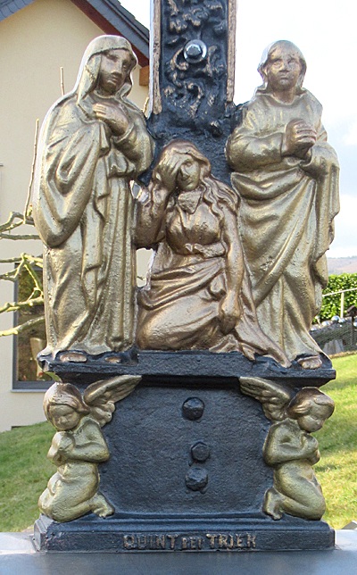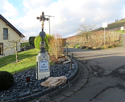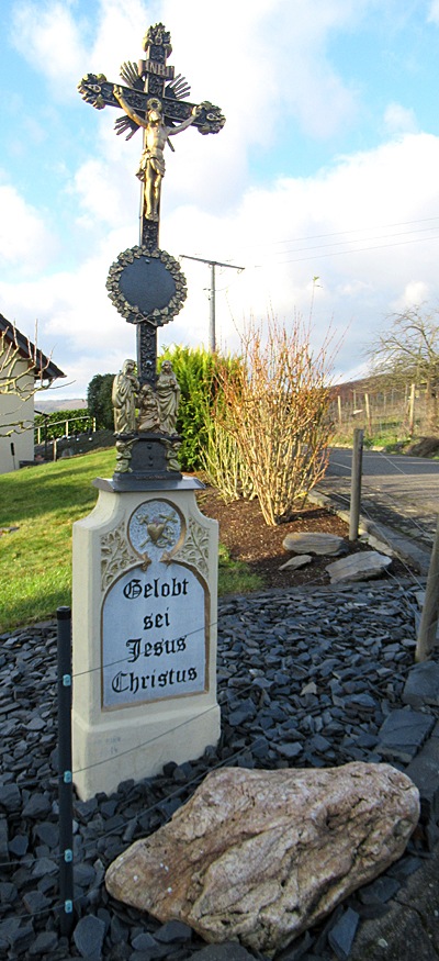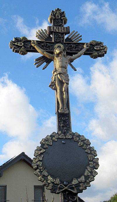Wegekreuz, um 1900 (?). Gußeisernes Kruzifix auf Sandsteinsockel. [1]