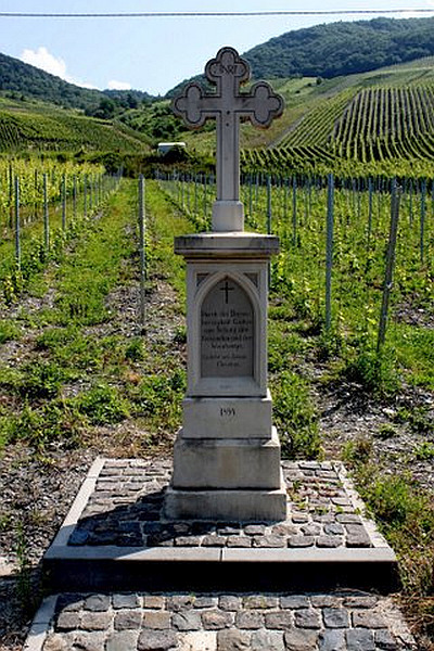 Wegekreuz nördlich der Ortslage am gegenüberliegenden Moselufer, an der Straße zwischen Graach und Zeltingen-Rachtig. Balkenkreuz in gotisierenden Formen, am Sockel bezeichnet 1851. [1]