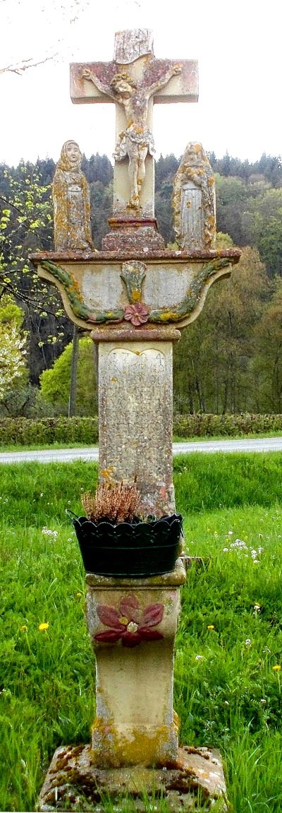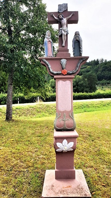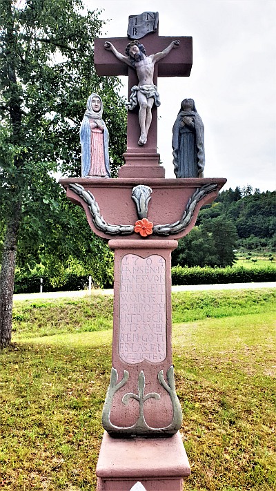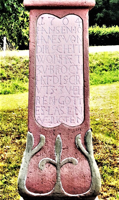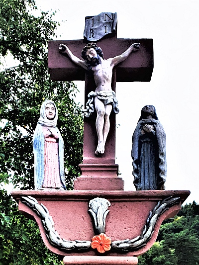 Barocker Kreuzigungsbildstock aus rotem Sandstein, bezeichnet 1704. [1]