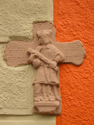 In die Außenwand des Wohnhauses eingelassen ein Steinkreuz mit dem Relief des heiligen Johannes von Nepomuk, bezeichnet 1779. [1]