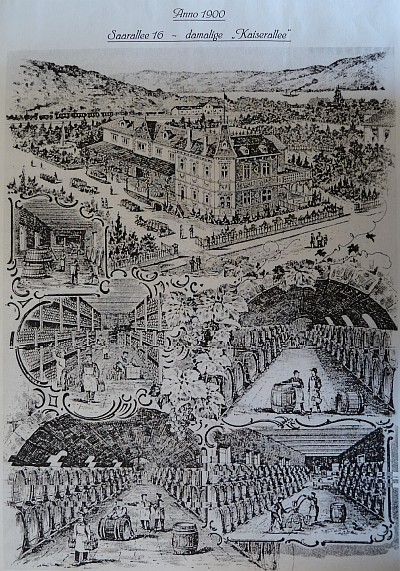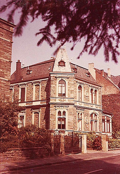Es gehörte seit Jahrzehnten der Familie Blau und ist das Stammhaus der Familienweingutes (Schlossberg, Geisberg). Hier starb 1940 auch der Erbauer des Schlosshotels, Josef Blau. Interessant vielleicht, dass ein Stollen des Weinkellers unterirdisch noch heute bis zu den Gleisen des ehemaligen Kueser Bahnhofs reicht; das Grundstück ging nämlich ursprünglich bis dort. [3]