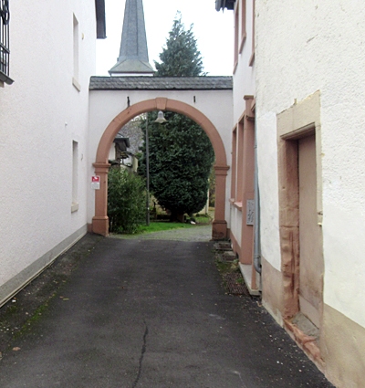 Pfarrhaus, unmittelbar nördlich der Kirche gelegen mit Zugang zum Kirchhof.