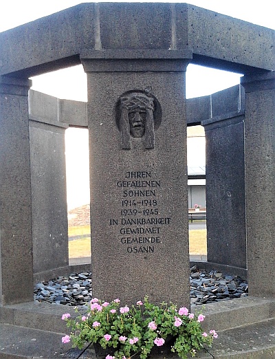 Die Inschriften am Ehrenmal erinnern an die Gefallenen und Opfer im 1. und 2. Weltkrieg aus dem Ort. Im Rahmen der Dorferneuerung wurde der Platz um das Ehrenmal 2015 neu gestaltet. Hinter dem Ehrenmal wurde die Aufenthaltsfläche durch eine Grünfläche mit Sitzgelegenheiten als Ruhezone im Dorf hergerichtet. Dieser dörfliche Treffpunkt wurde mit einem offenen Pavillon kombiniert. An der Spitze des Platzes steht ein mächtiger Lindenbaum, der als Naturdenkmal eingestuft ist.