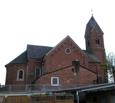 Saalbau mit Querschiff, eingezogener Apsis und Westturm in romanisierenden Formen, errichtet 1897 nach den Plänen des Trierer Dombaumeisters Wirtz. Nach dem Zweiten Weltkrieg nach Süden erweitert und modernisiert. [1]