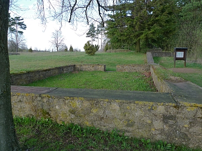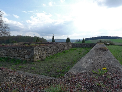 Gallo-römisches Heiligtum westlich von Pelm auf einer leicht nach Südost abfallenden Hochfläche über dem felsigen Kylltal.