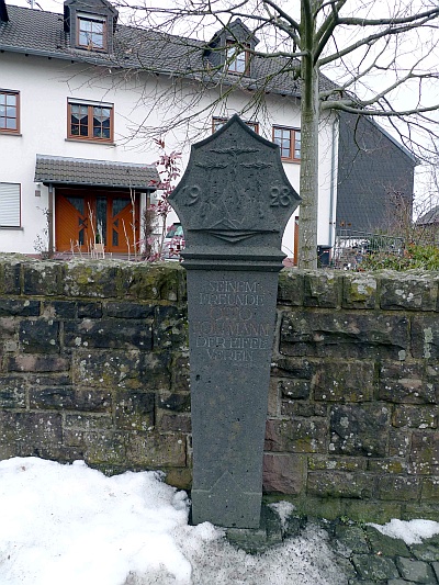 Bei Burger Straße 5. Gedenkstein des Eifelvereins für Otto Follmann. Basalt, bezeichnet 1928.