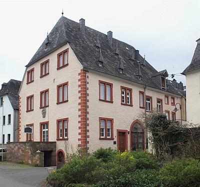 Erbaut unter dem Trierer Kurfürsten Hugo von Orsbeck (1676-1711). Stattlicher Massivbau mit Halbwalmdach. [1]
