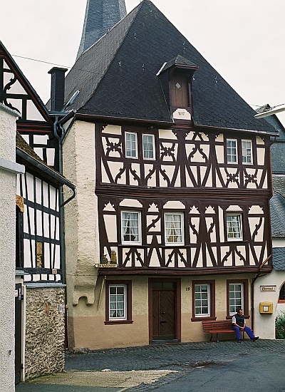 Das Erdgeschoß und die Brandmauer zu Nr. 17 massiv, sonst reiches Schmuckfachwerk, angeblich von 1617. [1]