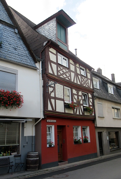 Dreigeschossiger, traufständiger Fachwerkbau über massiv erneuertem Erdgeschoß. Gut erhaltenes Schmuckfachwerk, bezeichnet 1607. [1]