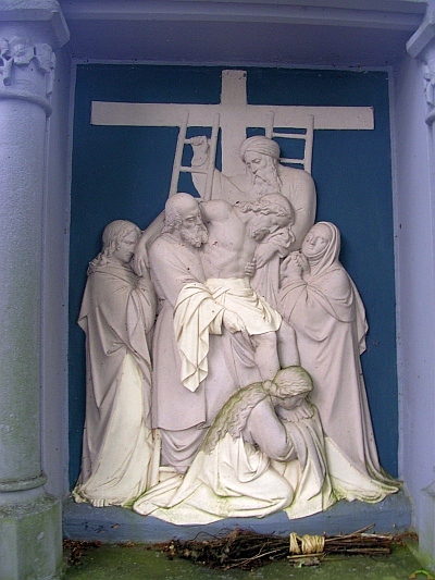 Im Pfarrgarten befinden sich [...] die Stationen des Kreuzweges,