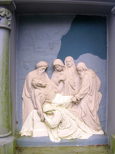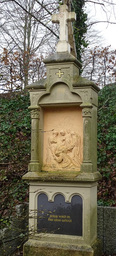 Im Pfarrgarten befinden sich […] die Stationen des Kreuzweges,