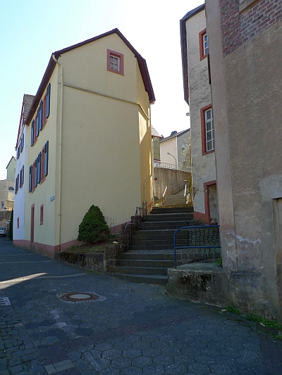 Die Lage des Hauses Nr. 81, in dieses winzige Dreieck eingezwängt zwischen Treppenaufgang und Straße, angebaut an das alte Haus von 1747 war für diesen Bauherrn wohl so wichtig, weil es 1903 in unmittelbarer Nähe einen Laufbrunnen gab.