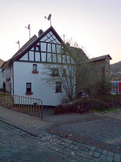 Es befand sich innerhalb der früheren Stadtmauer, die seine Rückseite in einer Flucht mit dem Mühlentor bildete. Erst in den 1930er Jahren ließen seine damaligen Bewohner, Familie Josef Schildgen, den Fachwerkanbau errichten, der hier beschrieben ist. [2]