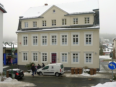 Ehemalige Bürgermeisterei; siebenachsiger klassizistischer Mansarddachbau, zweite Hälfte des 19. Jahrhunderts. [1]