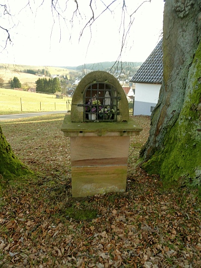 Bildstock [zwischen zwei Linden] zu Ehren der Mutter Gottes, zu welchem alljährlich noch Prozessionen abgehalten werden. [2]