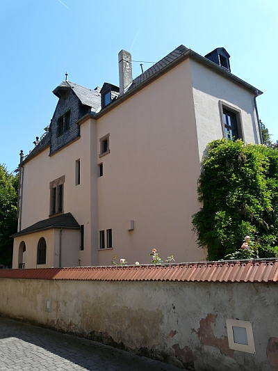 Lindenstraße 4 und 5, zwei Halbvillen; sandsteingegliederte Putzbauten in Formen spätgotisch geprägter Frührenaissance, 1896. [1]