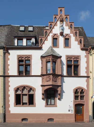 Wohnhaus mit anspruchsvoller neugotischer Fassadendekoration. [1]