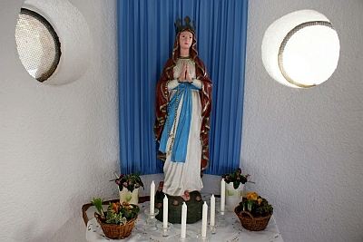 An der Säubrücke zwischen Züsch und Neuhütten, steht seit 1948 eine Wegkapelle. Sie wurde errichtet zu Ehren der "Königin des Friedens" (Kapelleninschrift in Goldlettern). Der Beweggrund zur Errichtung dieses Mahnmals war die glückliche Heimkehr aus dem 2. Weltkrieg. 65 ehemalige Kriegsteilnehmer hatten sich aus Dank an Gott verpflichtet, eine Kapelle aus Anlass ihrer glücklichen Heimkehr aus dem Krieg bzw. aus der Kriegsgefangenschaft zu errichten. Hier war die Stelle, wo schon immer ein Altar für die Prozession aufgebaut wurde. [1]