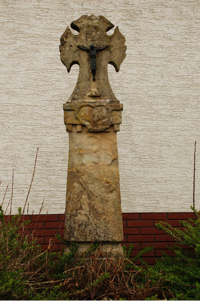 Das Schaftkreuz aus massivem Sandstein, dessen Höhe mit dem Sockel 2,20 m misst, steht an der Einmündung Hauptstraße / Wiesenweg am sogenannten "Kleinen Dorfplatz".