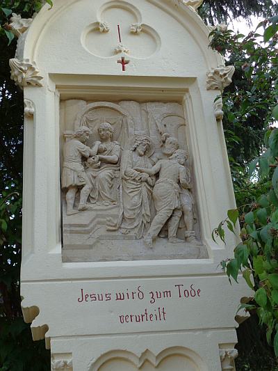 Kreuzweg; 13 freistehende Stationen, als 14. Station kleine Kapelle, neugotisch, Ende 19. oder Anfang 20. Jahrhundert. [1]