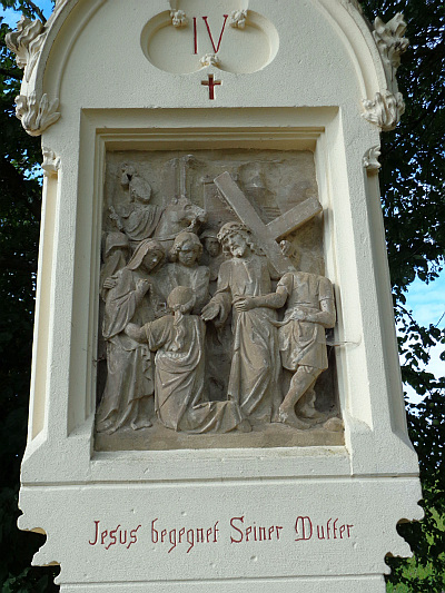 Kreuzweg; 13 freistehende Stationen, als 14. Station kleine Kapelle, neugotisch, Ende 19. oder Anfang 20. Jahrhundert. [1]