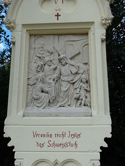 Kreuzweg; 13 freistehende Stationen, als 14. Station kleine Kapelle, neugotisch, Ende 19. oder Anfang 20. Jahrhundert. [1]