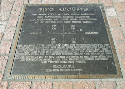 "Bis auf eine Straße in Mariahof gibt es im Stadtbild von Trier bislang kaum Hinweise auf Augustus. Wir haben deshalb im Rahmen der Geburtstagsfeiern unter dem Motto "2020 und mehr" überlegt, wie wir den Gründer unserer Stadt würdigen können." Mit diesen Worten begrüßte Oberbürgermeister Helmut Schröer am frühen Donnerstagmorgen Vertreter des Stadtrats, der Altertumswissenschaften, der Denkmalpflege und der Presse auf dem Viehmarkt. Das Ergebnis der Überlegungen lag da noch unsichtbar unter einer roten Samthülle: Eine 1,20 mal 1,20 Meter große Bronzeplatte mit einer "Divo Augusto" (dem göttlichen Augustus) gewidmeten Inschrift. Die Tafel, die in Anlehnung an die Vermessungstafel römischer Feldmesser gestaltet wurde, wurde später genau dort in das Pflaster des Viehmarkts eingelassen, wo sich einst eine Kreuzung des Straßennetzes der römischen Stadt befand. Die Platte erinnert auch an den offiziellen Gründungsakt für Trier, der nach neuesten Forschungen des Archäologen Dr. Klaus-Peter Goethert während des Sonnenaufgangs am 23. September des Jahres 17 v. Chr. stattgefunden haben könnte. Dieses Datum markiert nicht nur die Tag- und Nachtgleiche zum Herbstbeginn, sondern auch den Geburtstag des Augustus.