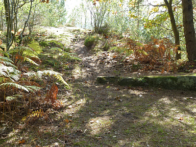 Nach Nordosten ist die Befestigung nur noch als Randwall erhalten und zeigt auch eine Lücke im Wall, die vermutlich als Toranlage anzusprechen ist.