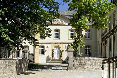 Das Wappen der einstigen Herrschaft Niederweis über der Freitreppe des Hauptportals mit der Jahreszahl 1751 ist eines der wenigen Zeugnisse über die Erbauungszeit des Schlosses. Franz Eduard Anton von der Heyden wurde am 01.11.1693 in Niederweis geboren. Er machte schon in jungen Jahren Karriere und wurde als Präsident des Provinzialrates von Luxemburg ranghöchster Beamter des Luxemburger Landes.