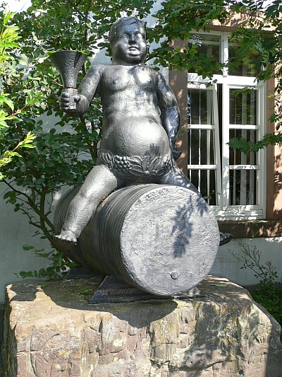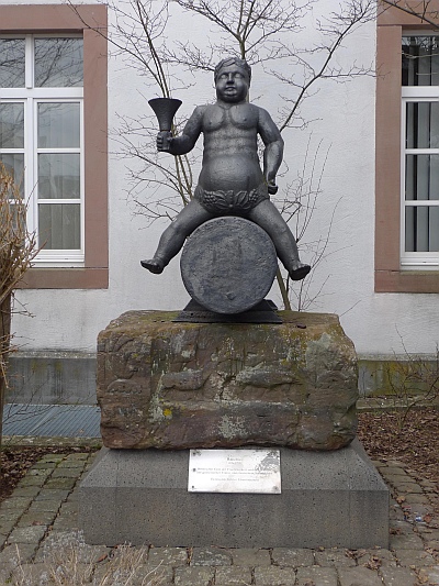 Auf einem römischen Reliefstein aus Sandstein sitzt auf auf einer Tonne der Weingott Bacchus. Stein und Bacchus stehen an der Giebelseite des Alten Landratsamtes zum FORUM hin, an der Leopoldstraße 5. Bis 1992 stand die Figur vor dem Nebeneingang des Kreishauses.