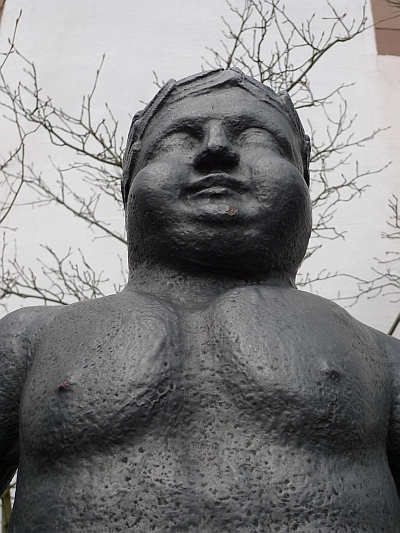 Landrat von Ehrenberg, nach dem in Daun eine Straße benannt ist, brachte die Figur vor 1900 nach Daun. Der damalige Eigentümer der Jünkerather Hütte,Ferdinand Poensgen, schenkte dem Landkreis die Figur. Der Ursprung des römischen Steinquaders, ist nicht bekannt, könnte aber Bruchstück eines römischen Grabmals sein.