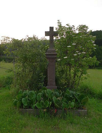 An einem Feldweg. Wegekreuz, Schaftkreuz, Sandstein, bezeichnet 1819. [1]