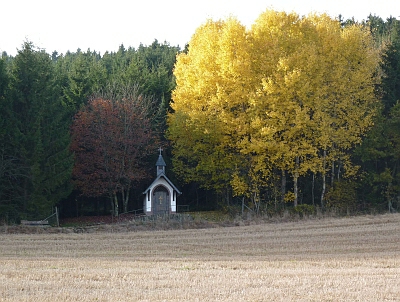 An der Stelle, wo das jetzige Heiligenhäuschen steht, befand sich vorher ein Bildstock, errichtet im Jahr 1812, mit einer etwa 40 cm tiefen Nische in einer Fichtengruppe.