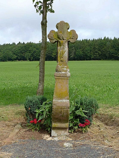 Das Sandsteinkreuz steht am ehemaligen Weidenbacher Weg (oberhalb Autohaus Neuerburg) zwischen der Densborner Straße und der Bundesstraße 257. Das ca. 2,00 m hohe Kreuz steht auf einem Sandsteinsockel, der schmale Schaft wird durch einen bauchigen Altarvorsprung geprägt. Das Kreuz ist an seinen Enden tatzenförmig ausgebildet und hat eine Korpus aus Sandstein. Es trägt die Jahreszahl 1774; der Grund für die Errichtung ist nicht bekannt.
