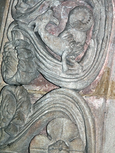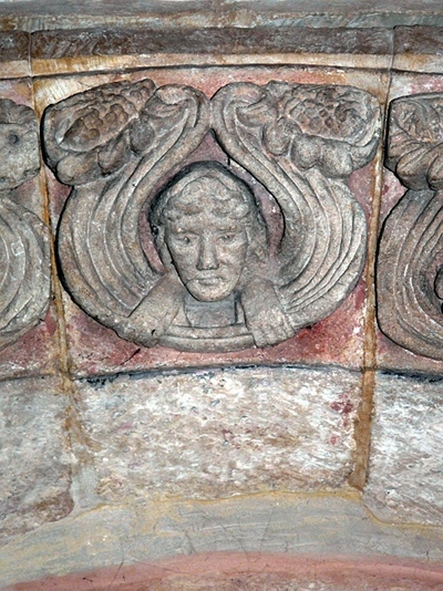 Die ornamentalen Einzelheiten sind genau vorgebildet an der Porte du lion des Domes von Verdun von etwa 1136. [1]