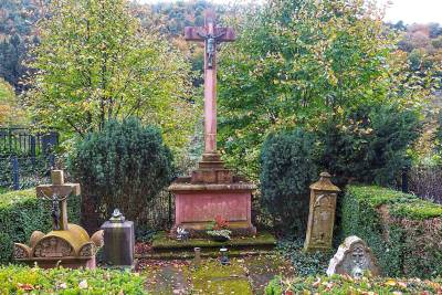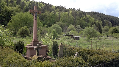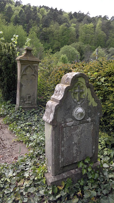Reste des 1812 am Ortsausgang angelegten und 1910 aufgegebenen Gemeindefriedhofes, auf dem nach Anlage des neuen Friedhofes 1909 und Verbreiterung der Oberstraße heute nur noch einige Pfarrergräber erhalten sind, 2004 saniert und wiedereingesegnet, der größte Teil der Fläche zum Spielplatz umgestaltet.