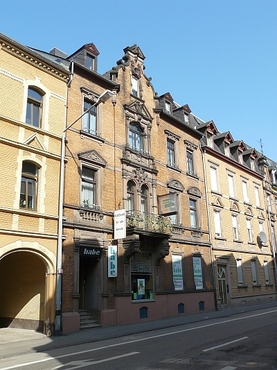 Dreigeschossiges Wohn- und Geschäftshaus zu vier Achsen, 1896 für den Schreinermeister Robert Grosse durch den Bauunternehmer Matthias Cartus errichtet.